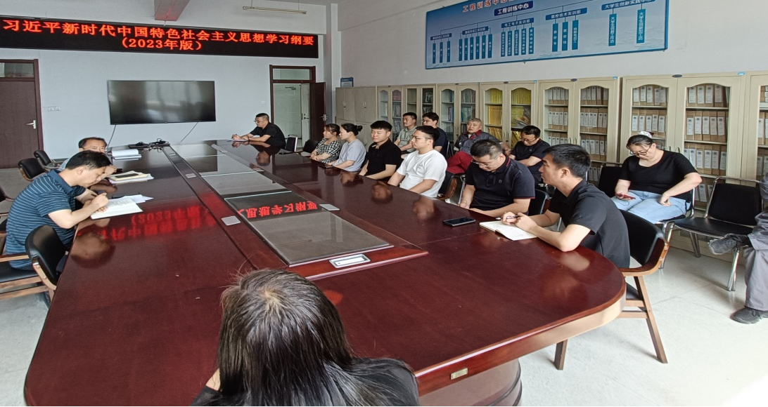 2024年6月19日,工程训练中心组织全体党员和其他教师围绕《习近平新时代中国特色社会主义思想学习纲要(2023年版)》进行学习。通过读原著、学原文、悟原理,更好地用习近平新时代中国特色社会主义思想武装头脑、指导实践、推动工作。